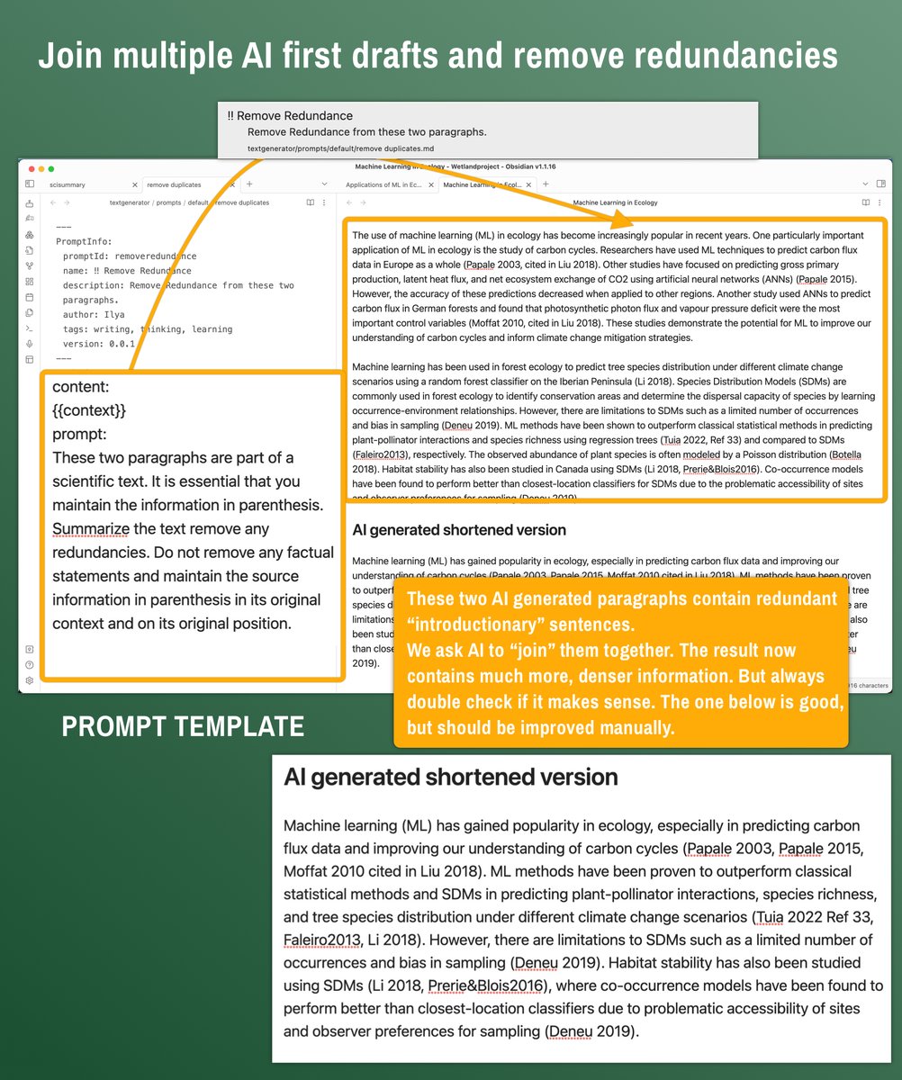 1. annotate PDFs in @zotero 2. import them into our notes in @obsdmd 3. work with ChatGPT directly in Obsidian using PROMPT TEMPLATES. 4. Use ChatGPT to write research publications.