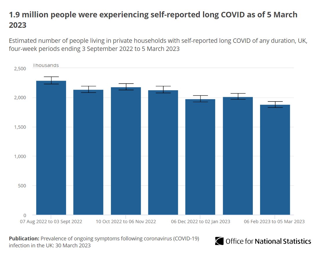 1.9 million people living in private households were experiencing self-reported long COVID more than 4 weeks after first confirmed or suspected #COVID19 – 2.9% of the population