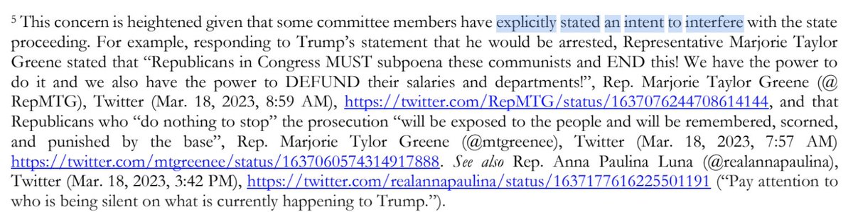 Bragg's observation that Marge was explicitly voicing an intent to interfere in a then-ongoing investigation came out at almost the same time as Marge reiterated her plan to do so--in a Tweet with no claim to be doing so as a MoC.