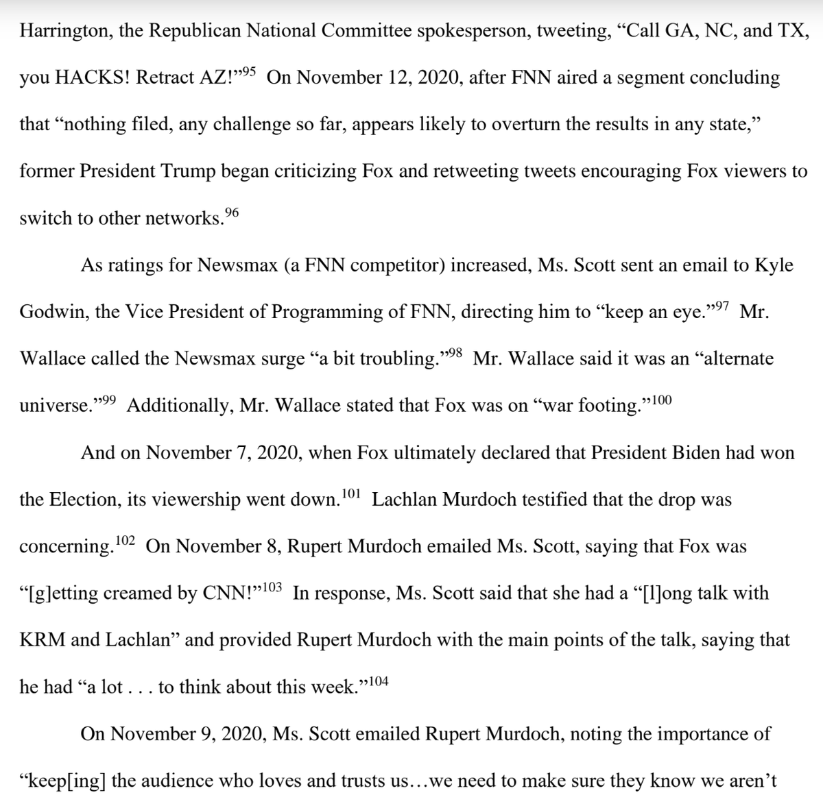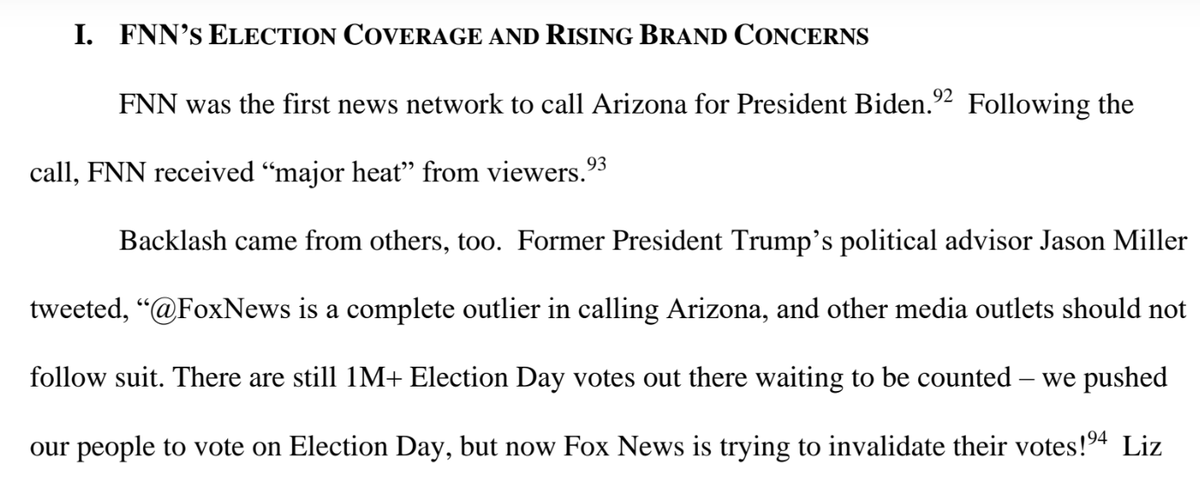 I know we've reviewed this several times already, but Judge Davis added tweets from Jason Miller and Trump to those Dominion included to flesh out how Trump bullied Fox to adopt conspiracy theories.