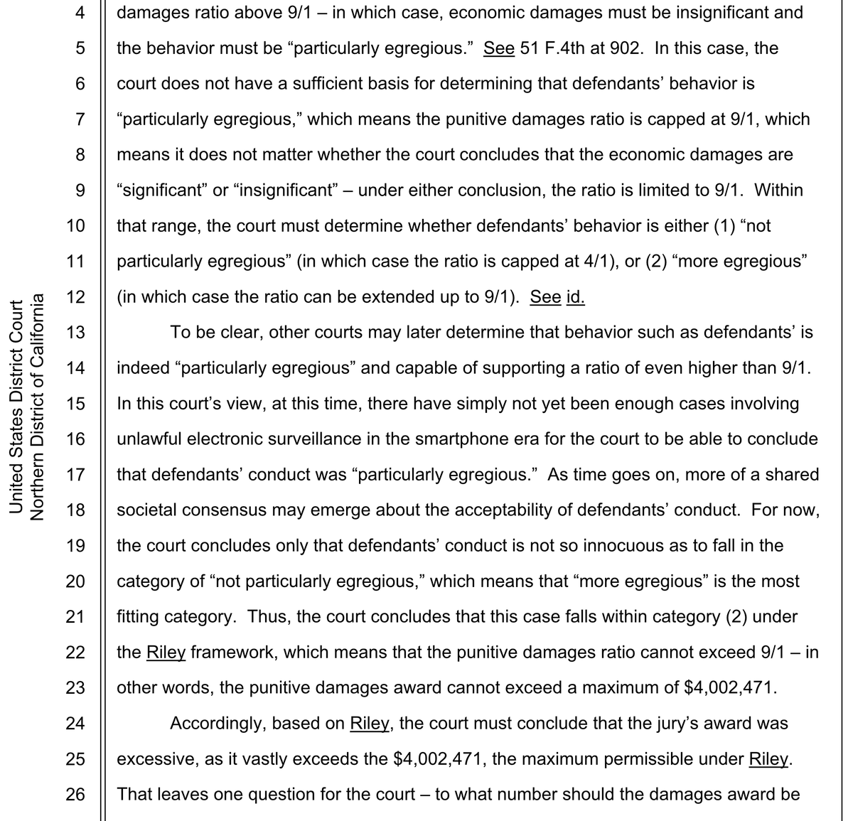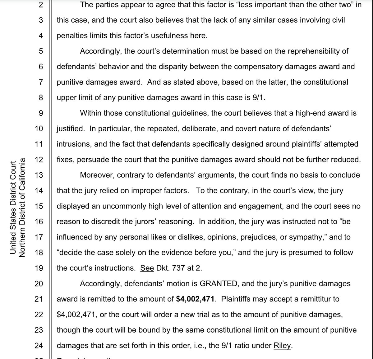 2/ Although the massive punitive damages jury award against NSO Group ($167m) got reduced by the court, as is expected in cases where it is so large (to 9x compensatory damages)...