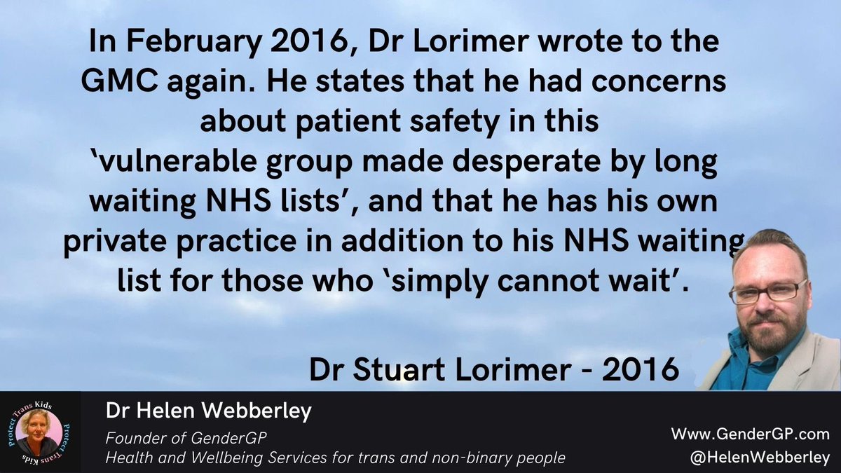 If you remember, Dr Lorimer and his other colleague from Charing Cross, Dr Barrett, were the ones that complained about Dr Russell Reid to the GMC when he started offering private care. 5/23 🧵