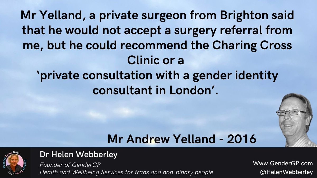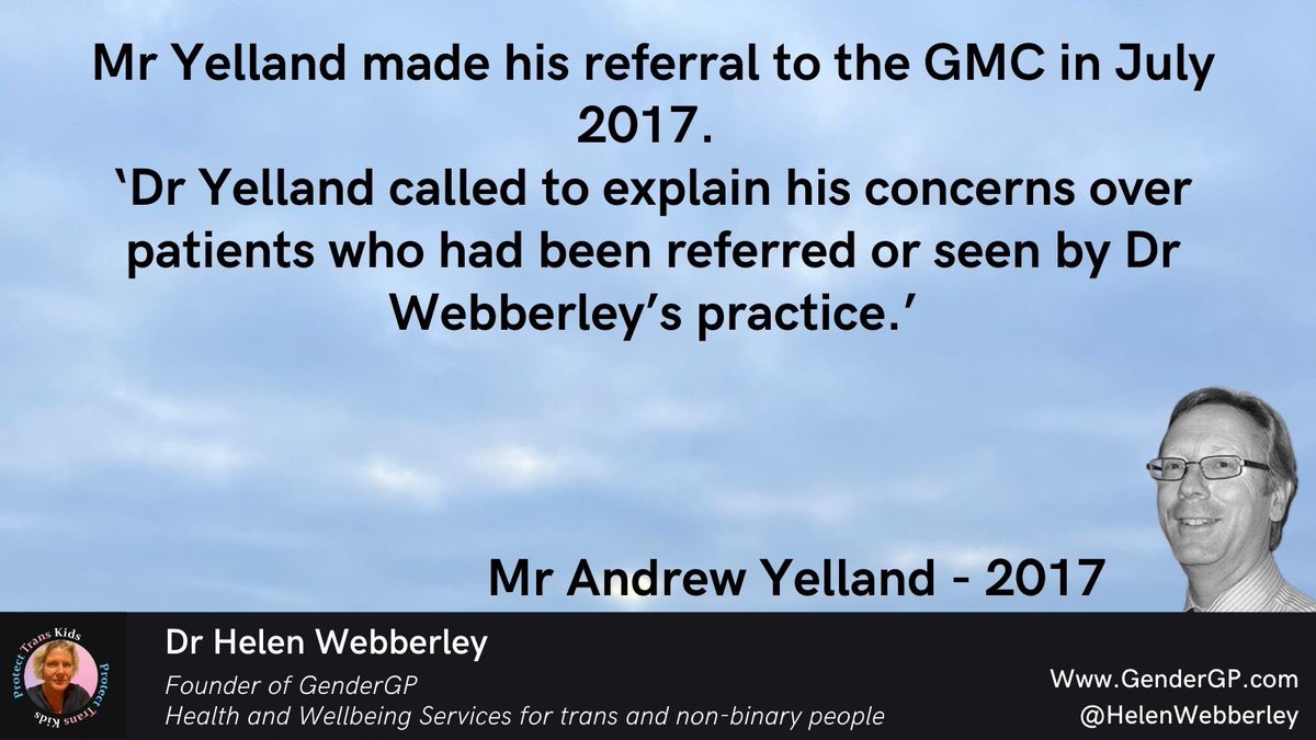 And later in 2017, Mr Yelland referred me to the GMC. Usually colleagues would refer a doctor to the GMC for very serious matters indeed. But maybe trans healthcare is different…. 9/23 🧵