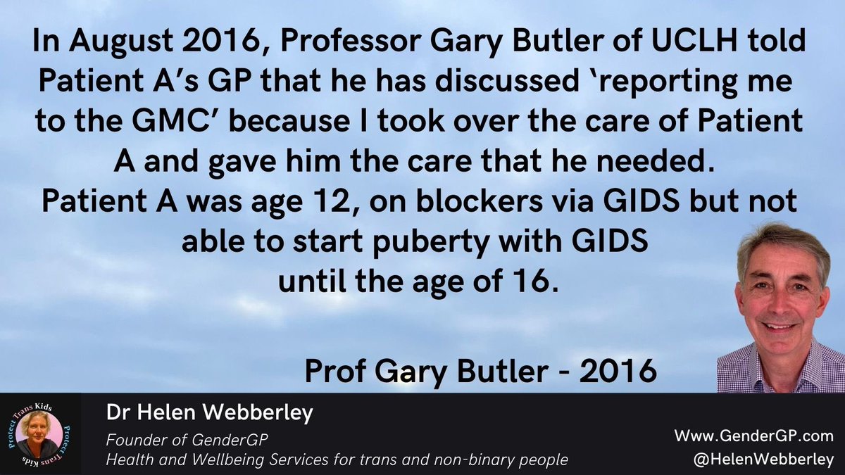 Professor Gary Butler is obviously a key player in this and he started his attack when Patient A left his care to come under my care in 2016. Prof Butler wrote to many people, including the GP, to tell them how awful I was. 11/23 🧵