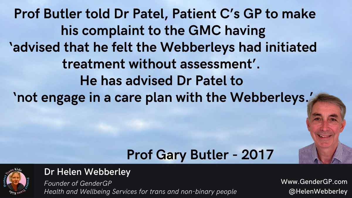 When Patient C’s GP phoned Prof Butler for advice, he is also told to refer the Webberleys to the GMC. It seems that Prof Butler really didn’t like us! 14/23 🧵