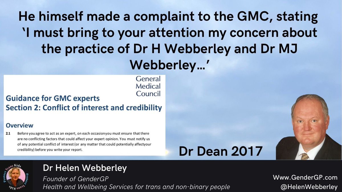 But then Dr Dean added his own complaint to the GMC outlining his own concerns about the Webberleys. Oddly he didn’t think this would be a conflict in him being an impartial expert witness. 17/23 🧵