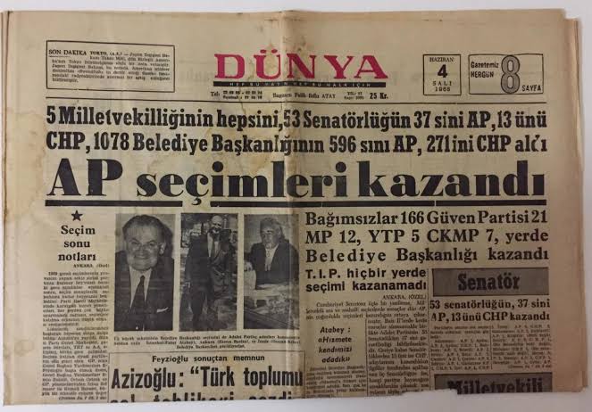 14- ...belediye başkanlığı, belediye ve il genel meclisi üyeliği seçimine giren parti, il genel meclisinde yüzde 1.6 oy aldı. Seçime girdiği 17 ilde toplamda aldığı oy düşük kalsa da partinin kimi illerde gösterdiği başarı dikkat çekiciydi. tr.m.wikipedia.org/wiki/1968_T%C3…