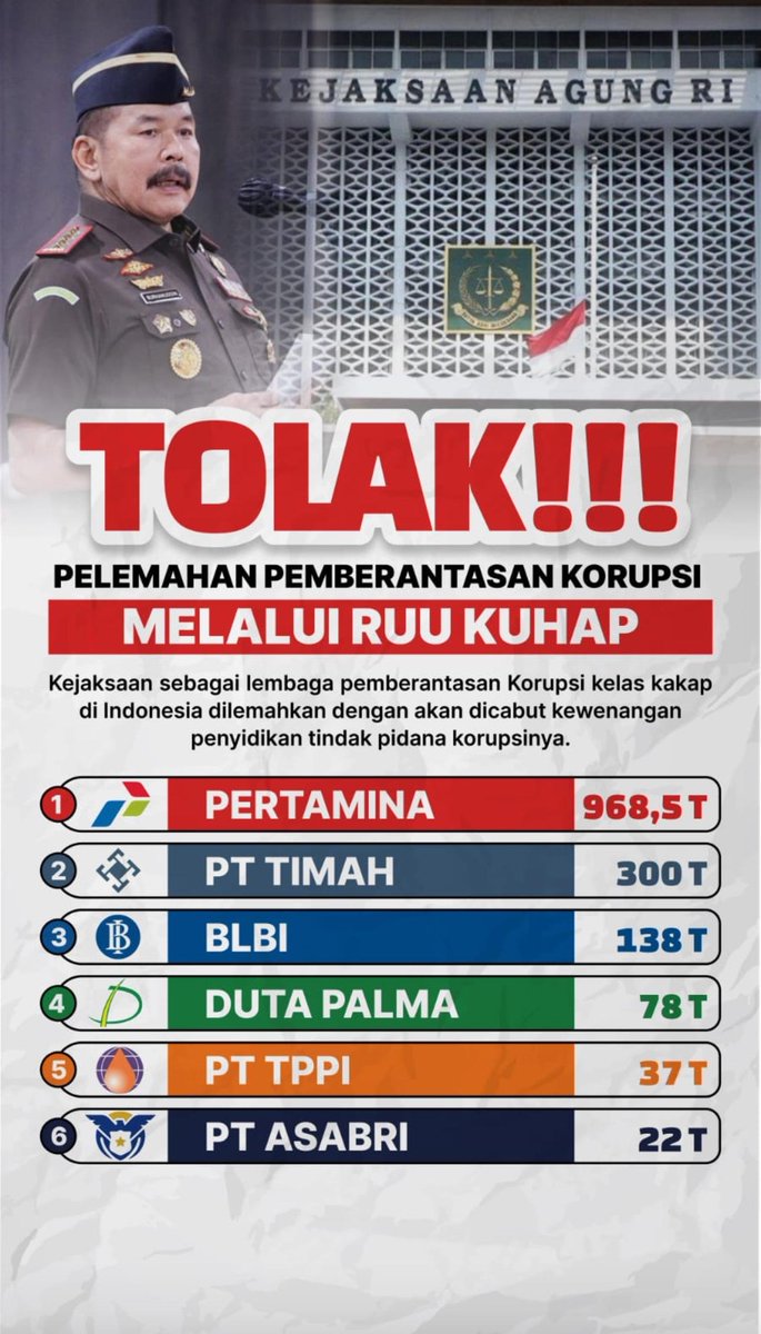 mengesahkan RUU perampasan Aset ogah-ogahan, RUU KUHAP yang akan melemahkan Kewenangan kejaksaan dalam pemberantasan Korupsi malah dibahas
