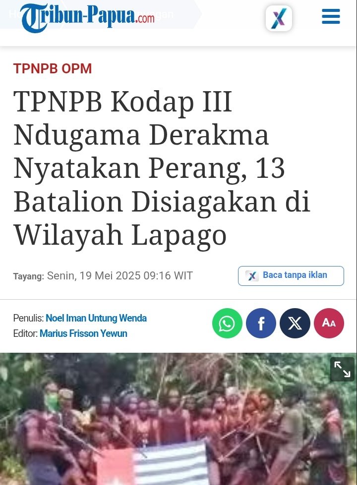 Manajemen Markas Pusat KOMNAS TPNPB telah menerima laporan resmi dari pasukan TPNPB Kodap III Ndugama Derakma pada hari Minggu, 18 Mei 2025 sekitar pukul 23.50 bahwa;