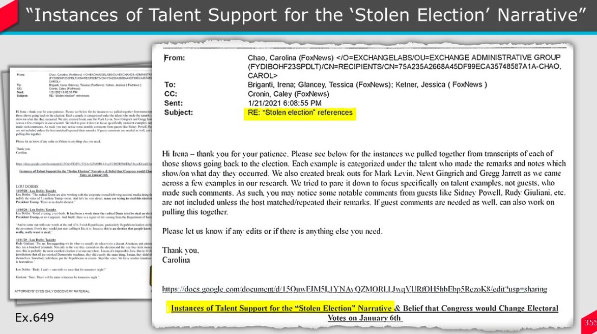 In this 11/11/20 email -- previously redacted -- Fox CEO Suzanne Scott says that after Fox's Arizona call for Biden "A trust has been broken and it's our jobs to help them through this to the other side ...and certainly speaking to the audience with respect is critical."