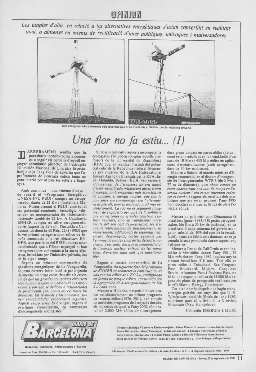 @Viuredelaire els inicis de l'eòlica a l'Estat espanyol, empreses elèctriques fent-se el "pioner", comentaristes dels mitjans de comunicació "saberuts", ecologistes, . . . una reflexió feta fa ja 40 anys, en el #DiarideBarcelona (2 articles)