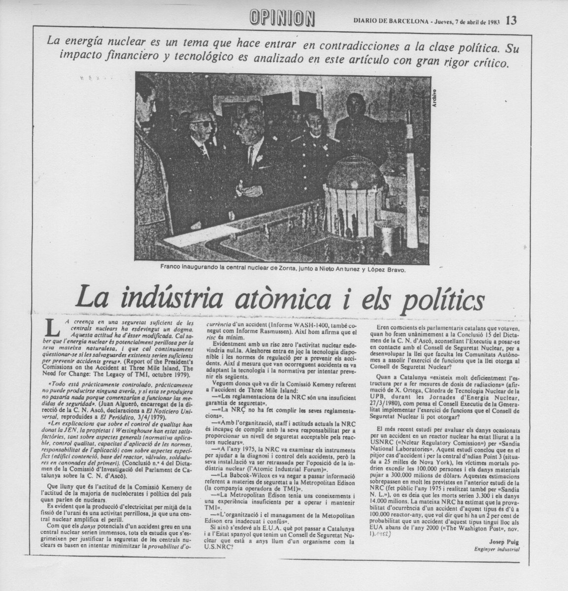- 20/5/1983: Catalunya cap a la nuclearització?