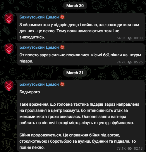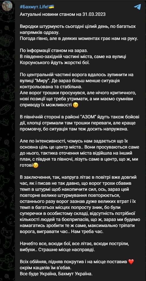 I think Russia rotated units over the past 1-2 weeks and began another concerted push a few days ago. It seems the focus is on the center of the city instead of the northern flank near the road, which appears to be more secure. t.me/bakhmut_life/2… t.me/bahshid2023/208
