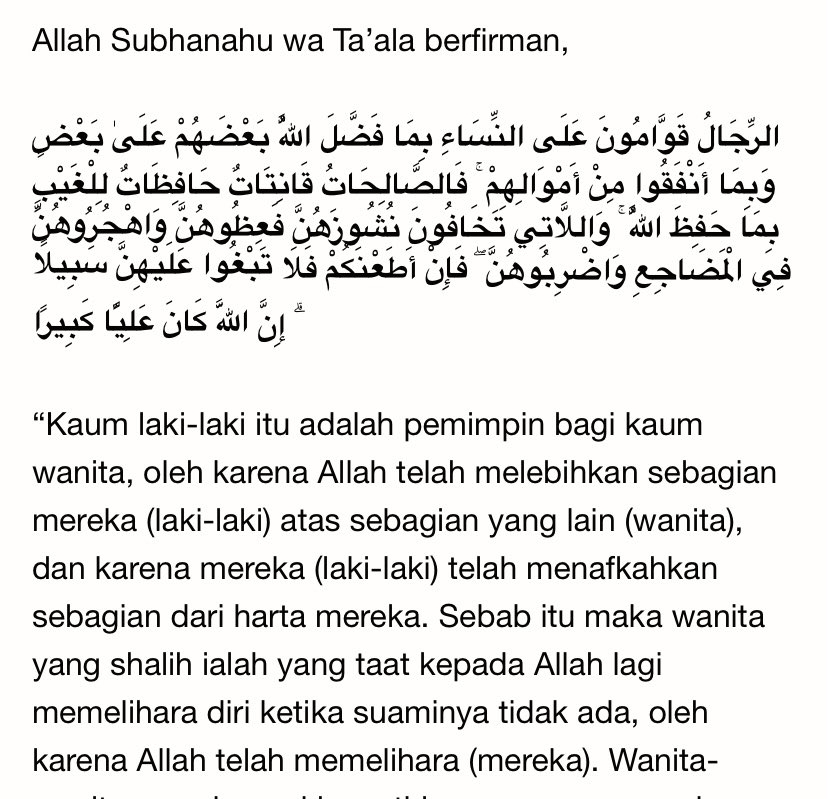 Dalam islam pun konsepnya bukan “kesetaraan gender”, tapi “keadilan untuk tiap gender sesuai fitrahnya”