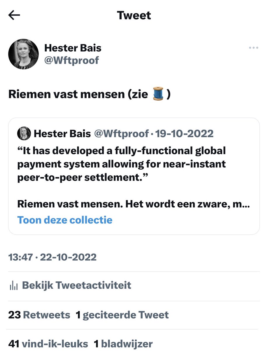 Nu het onderpand (collateral management) is gecentraliseerd bij ECB met het opkoopprogramma v Draghi en bij de partijen die Fnality en HQLAᵡ hebben opgetuigd, lijkt de tijd rijp - ongeacht effect voor burger - om de prof. blockchain tbv settlement/onderpand uit te rollen.