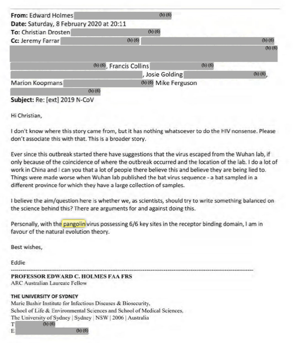 1/ Back in Feb 2020 Eddie Holmes pointed out that even inside China many people find the lab leak hypothesis plausible (cue Angie accusing them of sinophobia).