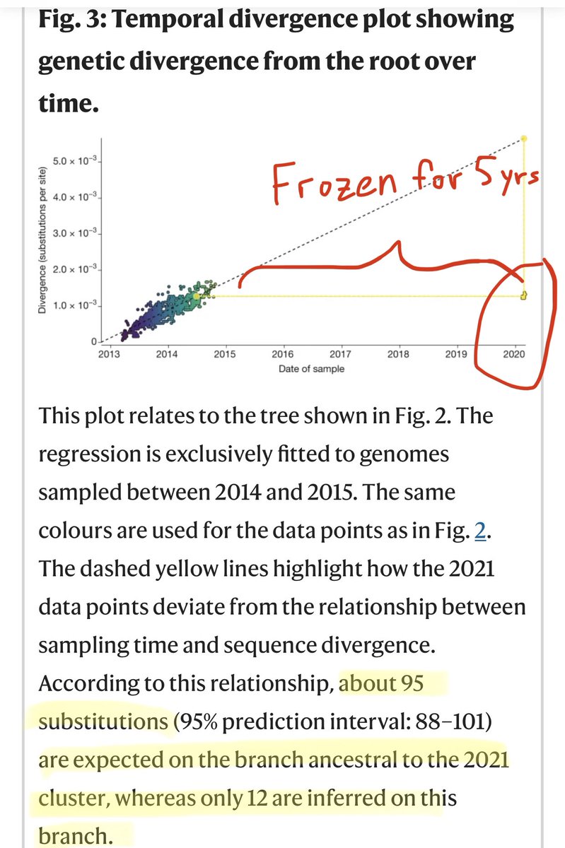 Whoa, was the 2021 Ebola outbreak caused by a lab leak? Because in 2021 it was the same human-adapted strain as was previously seen in the 2014 outbreak — i.e. there were so few novel mutations between them that the virus was essentially frozen for 5 years (just as in the 1977… twitter.com/i/web/status/1…