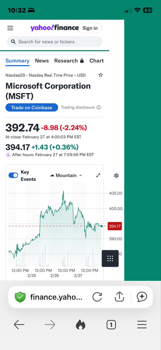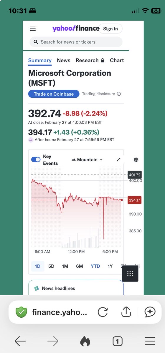 Microsoft had an odd dip in the 1 day chart followed by 5 day and 6 month view.