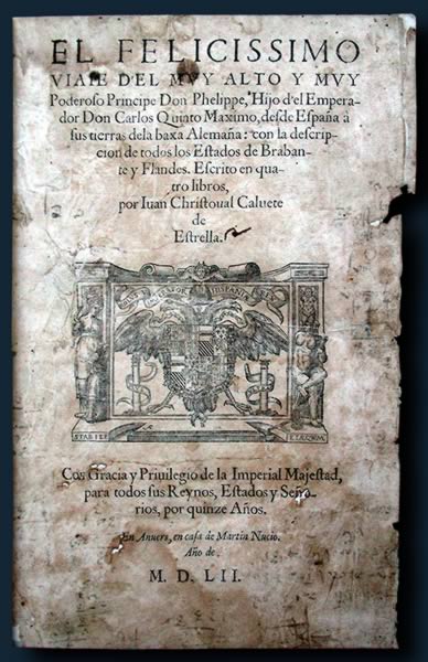 adornada con los escudos y símbolos de Carlos V. El recorrido desde esa puerta por el interior de la ciudad se adornó con más de mil pilares de mármol blanco y festones vegetales, de los que colgaban los retratos de Carlos V, el príncipe, María y Leonor;