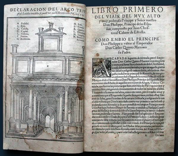 arcos triunfales, espectáculos vivientes, tablados, donde no faltaba la escultura del gigante Antígono, uno de los símbolos de la ciudad, que deponía su fiereza ante el príncipe Felipe, según rezaba la inscripción.