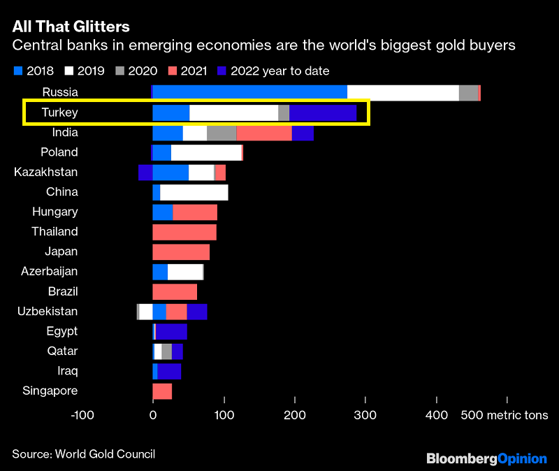 Dünya Altın Konseyi'ne göre merkez bankaları, 2018'de 273 ton altın almışken 2021'de toplam 650,3 ton altın satın aldılar. Bu, merkez bankalarının yarım yüzyılı aşkın süredir gerçekleştirdikleri en yüksek altın alım seviyesi.