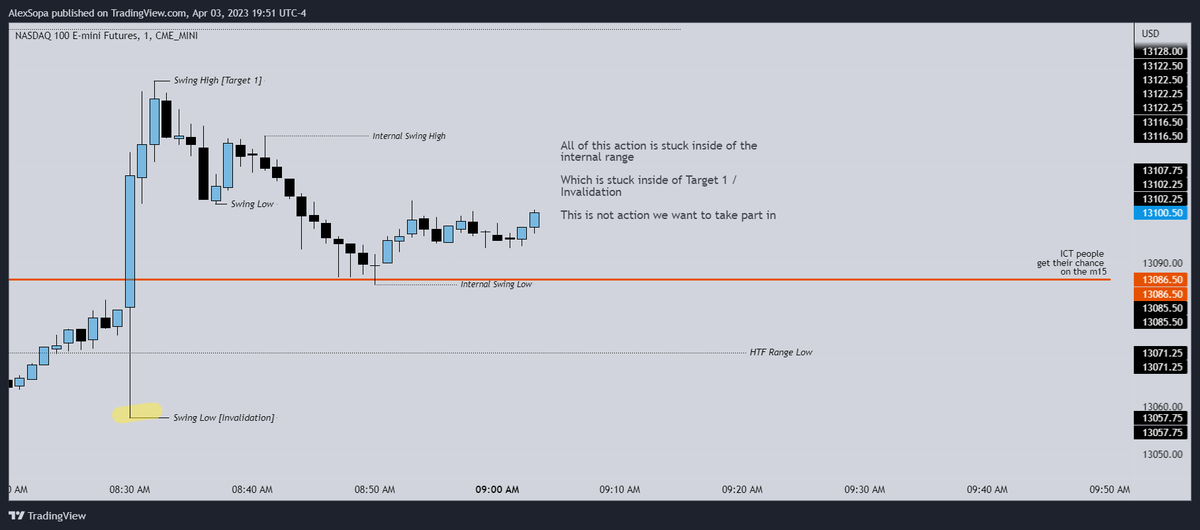 Given we expect news / volatility at NY open we should be on LTF with the HTF idea if we want to reduce our risk [at the risk of stopping out more often.