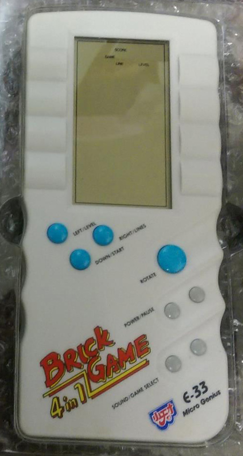 Есть еще "старшая" модель Micro Genius E-33, на которой уже написано привычное название - Brick Game. Скоро оно станет практически нарицательным.
