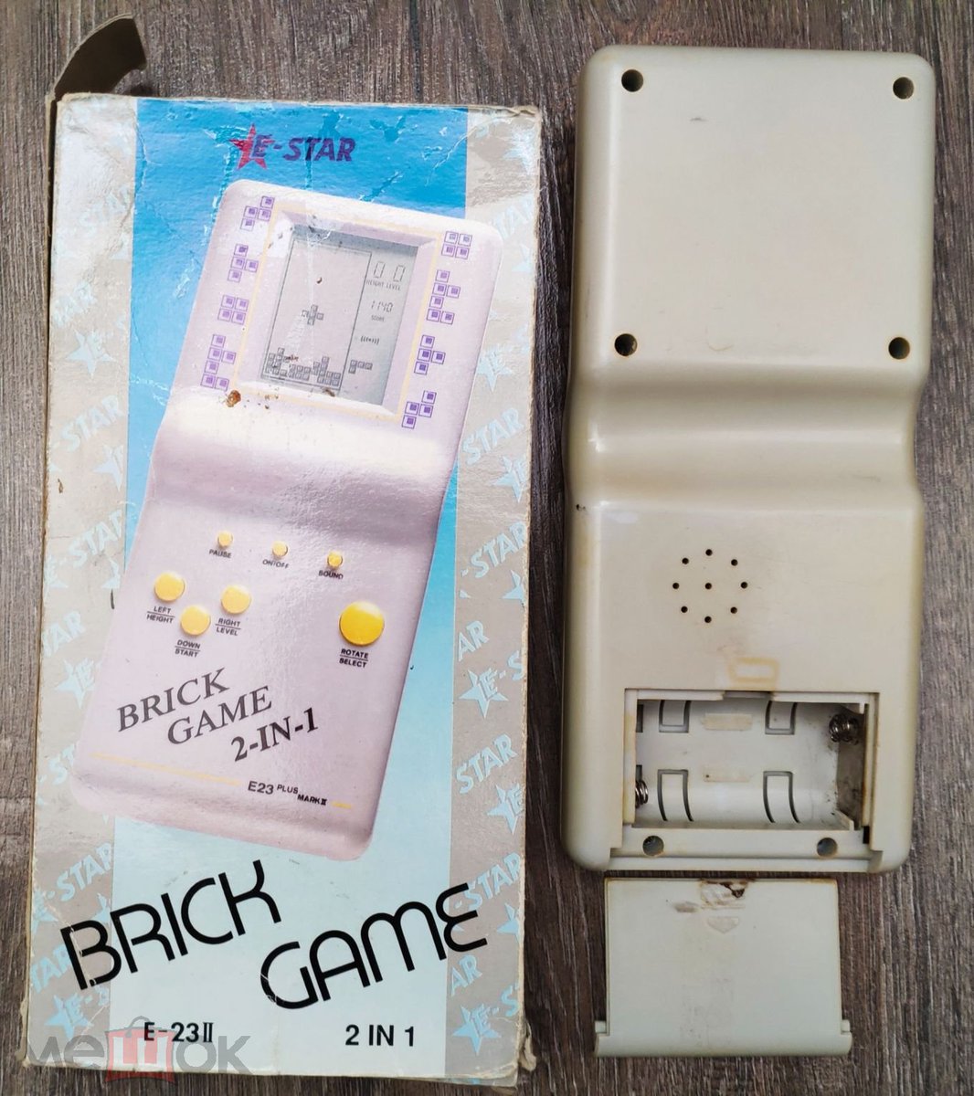 Первые модели Brick Game от E-Star, с индексом E-23, имели чаще всего две встроенные игры (два варианта Тетриса) и колонку "призовых фруктов" справа. И еще скорость игры и музыки на нем ниже, чем у следующих моделей.