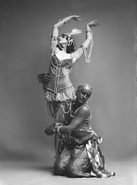 Sheherazade (1910), involves a shah's wife and her relations with a Golden Slave. It includes an orgy in an oriental harem. When the shah discovers the actions of his numerous wives and their lovers, he orders the deaths of those involved. Also based on One Thousand & One Nights.