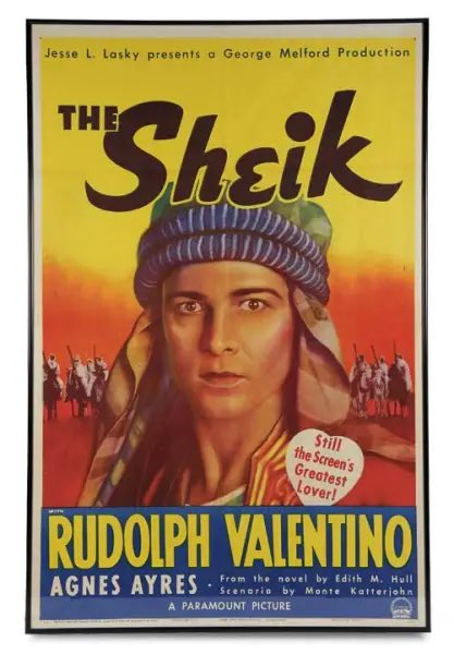 The sheik (1921), takes place in Algeria, where Lady Diana disguise herself as a dancing girl to become one of the prospective brides, yet is unable to go through with the deception bc the sheik liked her. the sheik later abducts her, intending to make her fall in love with him.