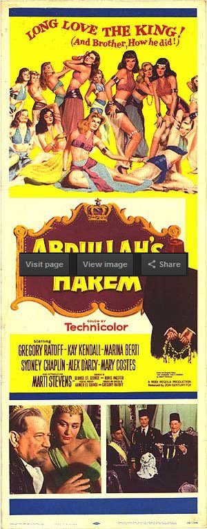 Abdullah the Great aka. Abdullah’s Harem (1955), about an Arab sheikh and a European model. He’s always with the Arab women he bought, along with belly dancers. He still tries to seduce Ronnie. He then attempts to drug her in order to sleep with her, but fails and gets dethroned.