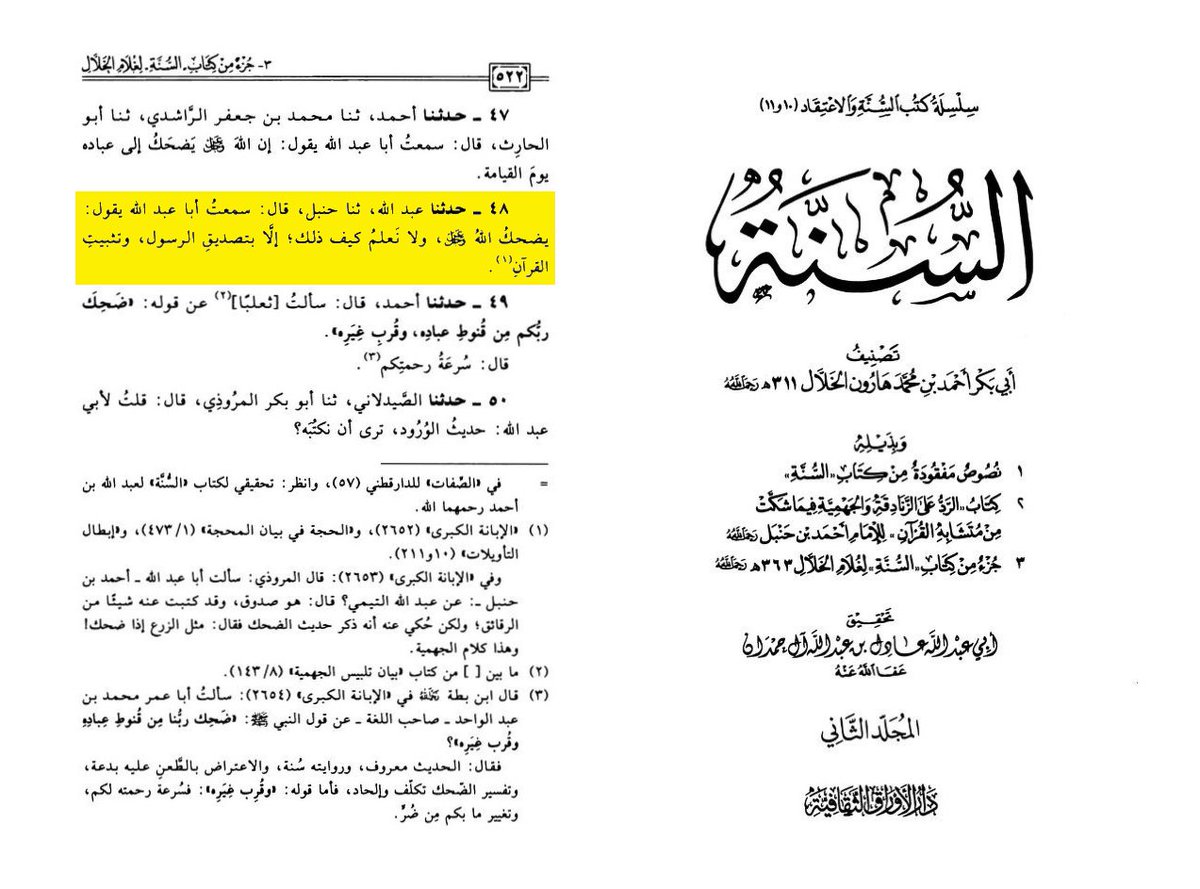 [2] He said, “Allāh laughs, but we do not know how [His laughing] is, aside from confirming the Messenger, ṣall-Allāhu ‘alayhi wa sallam, and affirming the Qur’ān.” So a “how” that we don’t know, exists!