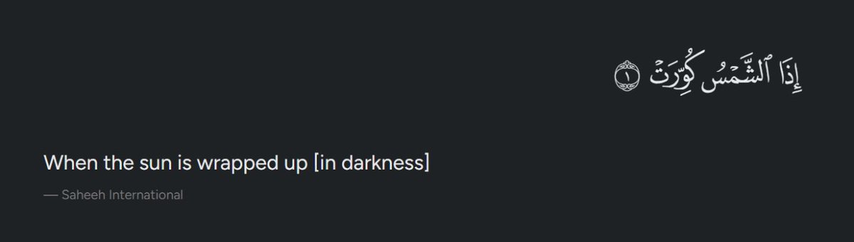 Qur’ān: “When the sun is wrapped up (kuwwirat)” [81:1].