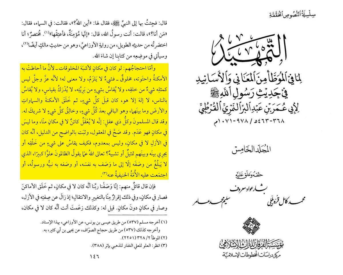 Note: This thread does discuss whether Ibn ‘Abd al-Barr’s views regarding movement (ḥarakah), the seating (ijlās), etc. are correct. Our objective is to only clarify what he did and did not believe in light of his own statements.