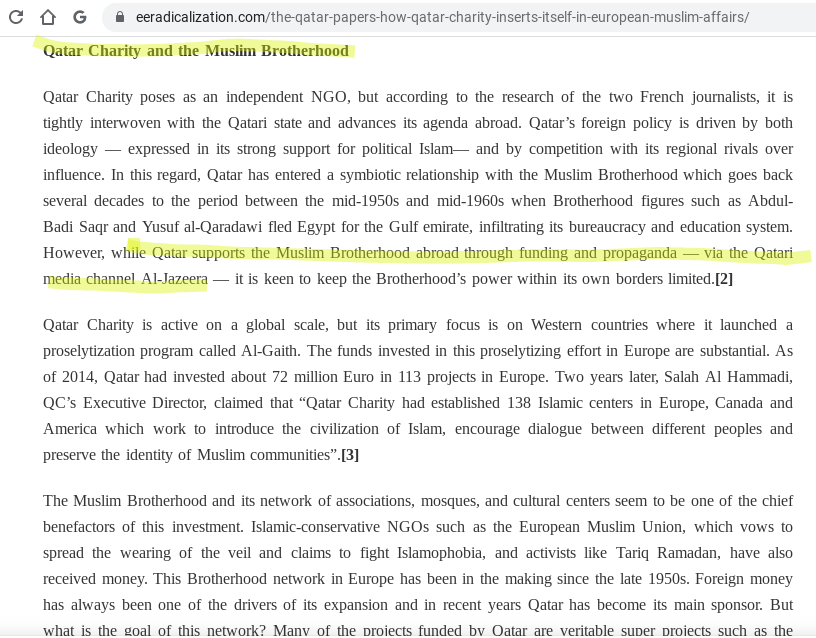 Qatar Charity is owned by the Qatar government and they also funded the radical organization Muslim Brotherhood!