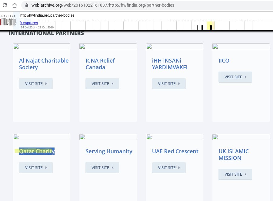 14. Another NGO Qatar Charity is also a partner and supporter of the Human Welfare Trust.