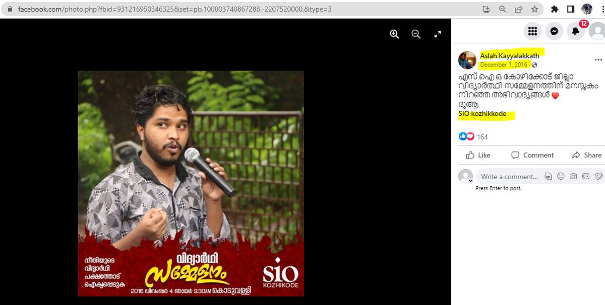 5. Aslah Kayyalakkath is an active member of The Students Islamic Organisation of India (SIO).