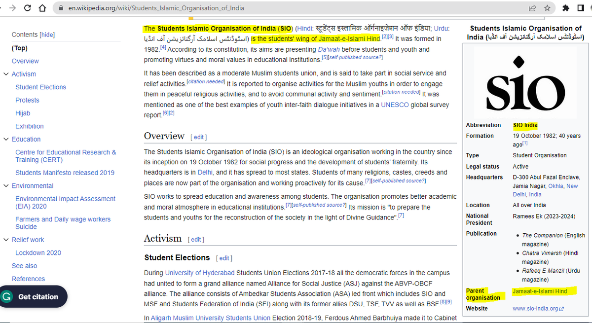 6. SIO is student wing of Jamaat-e-Islami Hind.