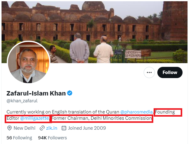 Meet Zafarul-Islam Khan. Kejriwal has made him Chairman of, the Delhi Minorities Commission and he also runs another propaganda website Milligazette.