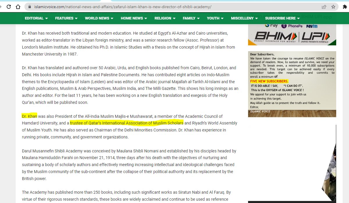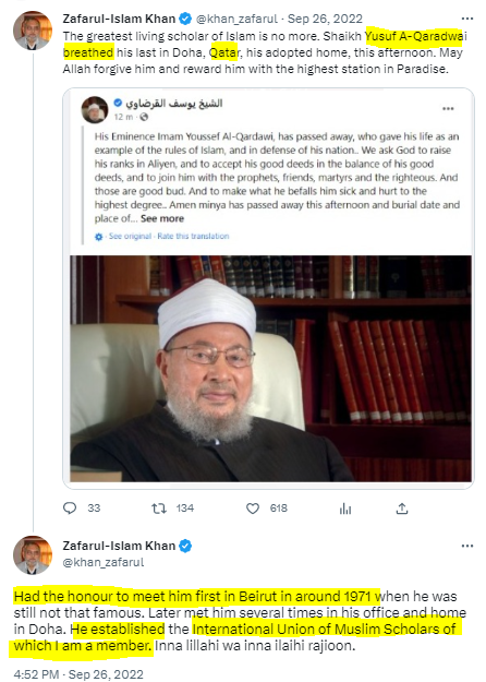 16 Zafarul-Islam Khan is a trustee of Qatar’s International Union of Muslim Scholars (IUMS)