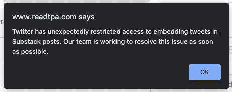 A day after @SubstackInc announced its own Twitter-like service called Notes, Twitter seems to now be blocking the ability to embed tweets within Substack posts.