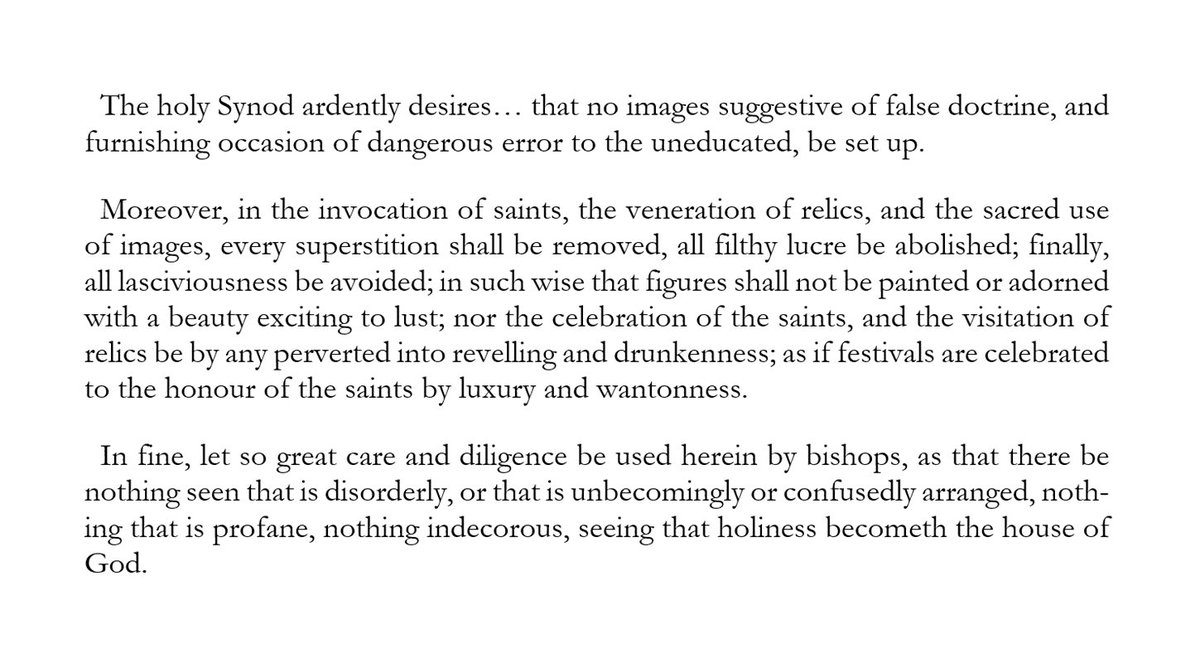 Michelangelo's non-scriptural Last Judgement, a wall of three hundred confusingly arranged naked bodies, fell foul of the Council's decree.