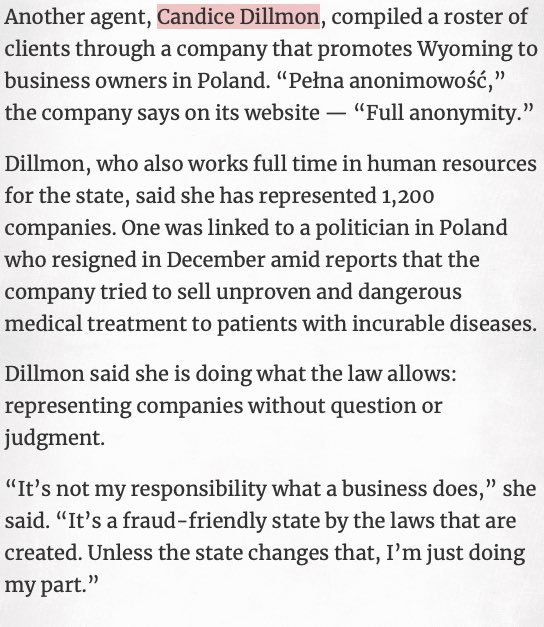 Per ICIJ, Dillmon is A-OK being the corporate agent for scammers, i.e. disgraced Polish politicians hawking snake-oil cures to the terminally ill.