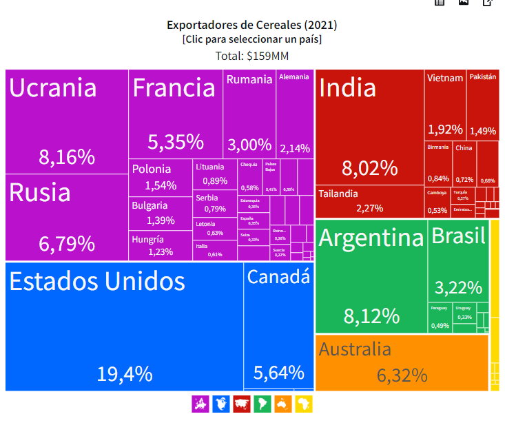 2⃣🥖Antes de la guerra el nivel de exportaciones de cereales a nivel mundial era así: