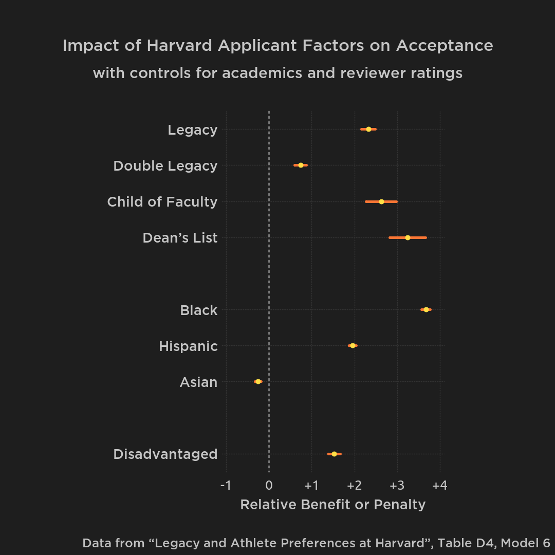 It's especially odd since it just seems to be a red herring. There's nothing to it that actually confronts the existence of racial bias in admissions. It just says "Look, look selection over a threshold and group means continue to exist!"