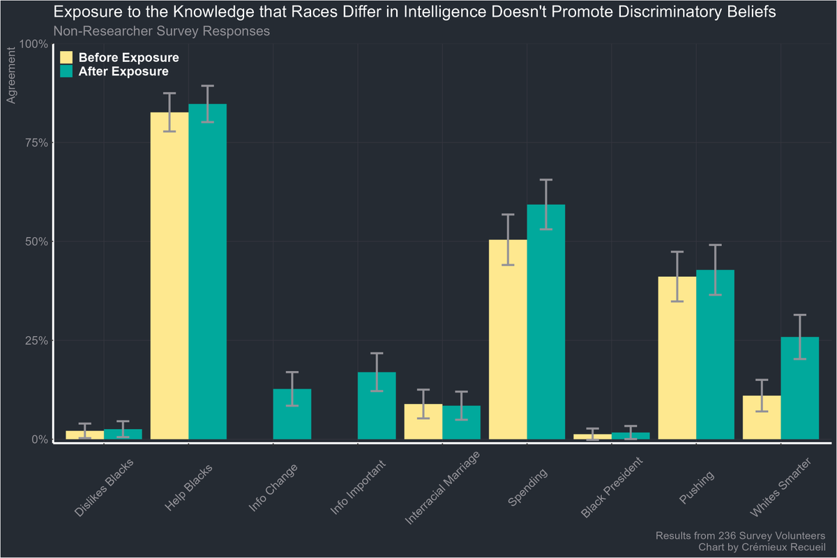 So I asked nonresearchers their opinions before and after being exposed to IQ differences, and the only belief they changed was their belief in IQ differences.