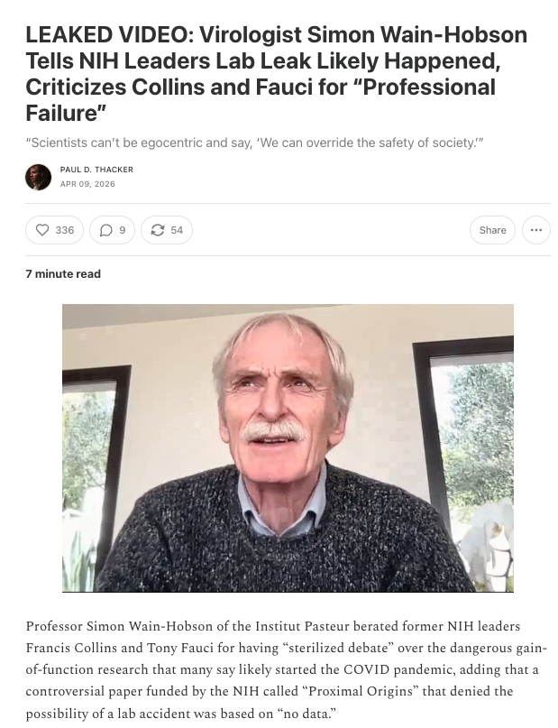 👉🏻 "Everyone was scared...because Drs. Fauci, Nabel, and Collins had sterilized the debate. We can't have this."
