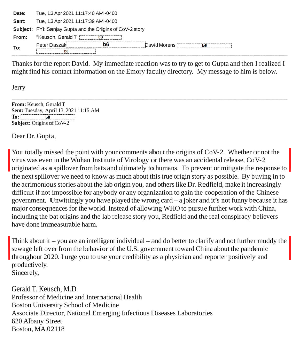 Daszak and Keusch are just annoyed that CNN dared interview him.