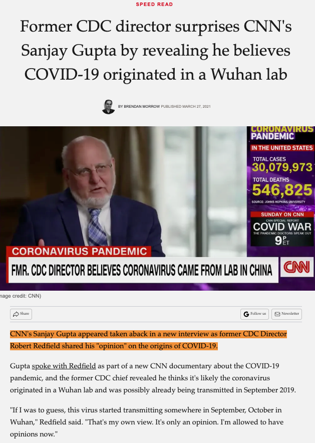 That was just after the CNN interview of Dr. Redfield on 27 March 2021.