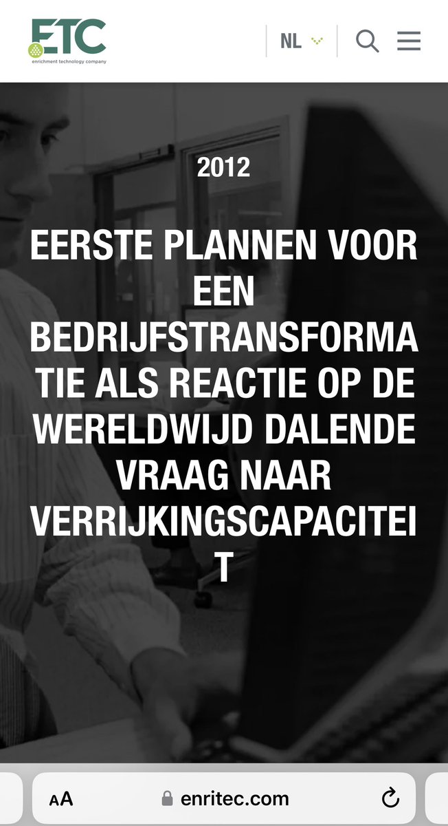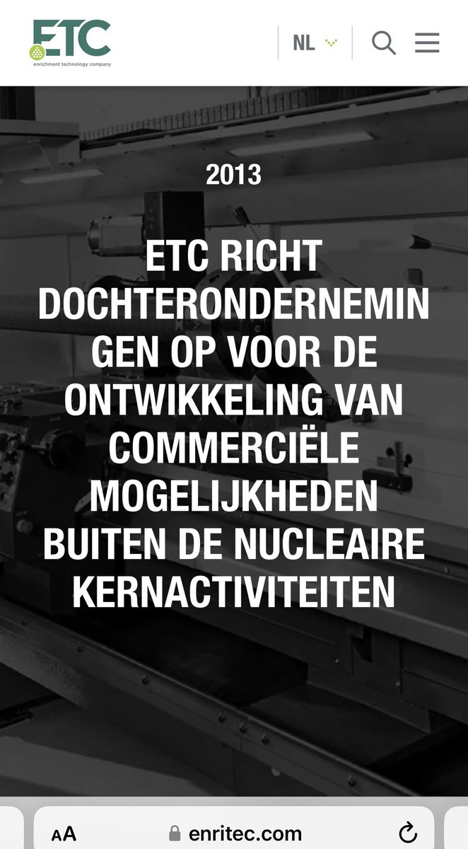 In 2012 worden plannen opgesteld voor een bedrijfstransformatie omdat de wereldwijde vraag naar verrijkingscapaciteit daalt. In 2013 richt ETC dochterondernemingen op voor de commerciële mogelijkheden buiten nucleaire kernactiviteiten (waterstof etc).